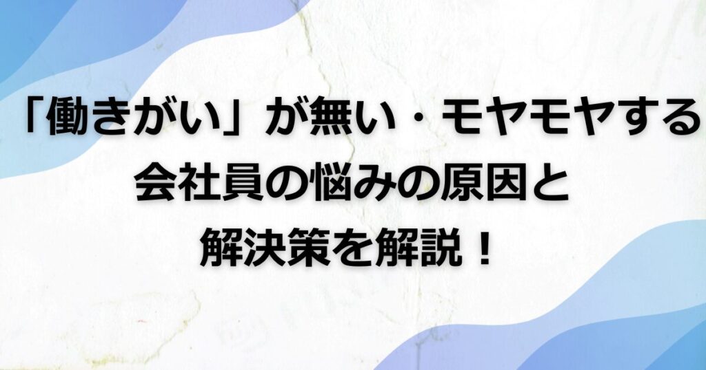 「働きがい」が無い、モヤモヤする会社員が抱える悩みの共通点と解決策を解説